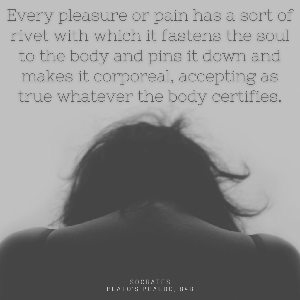 This is something that Socrates says in Plato’s Phaedo at 84B about the soul being riveted to the body. It has been a very useful anchor for me while I navigate sharp emotions and anxieties about the pandemic, the vaccination queue, and other things that are beyond my control. (The pandemic has taught me so much about my vulnerabilities and triggers. “Know thyself” is sometimes like reopening a wound to drain the pus.) I know that many others are also experiencing difficult emotions and profound levels of stress. 💛