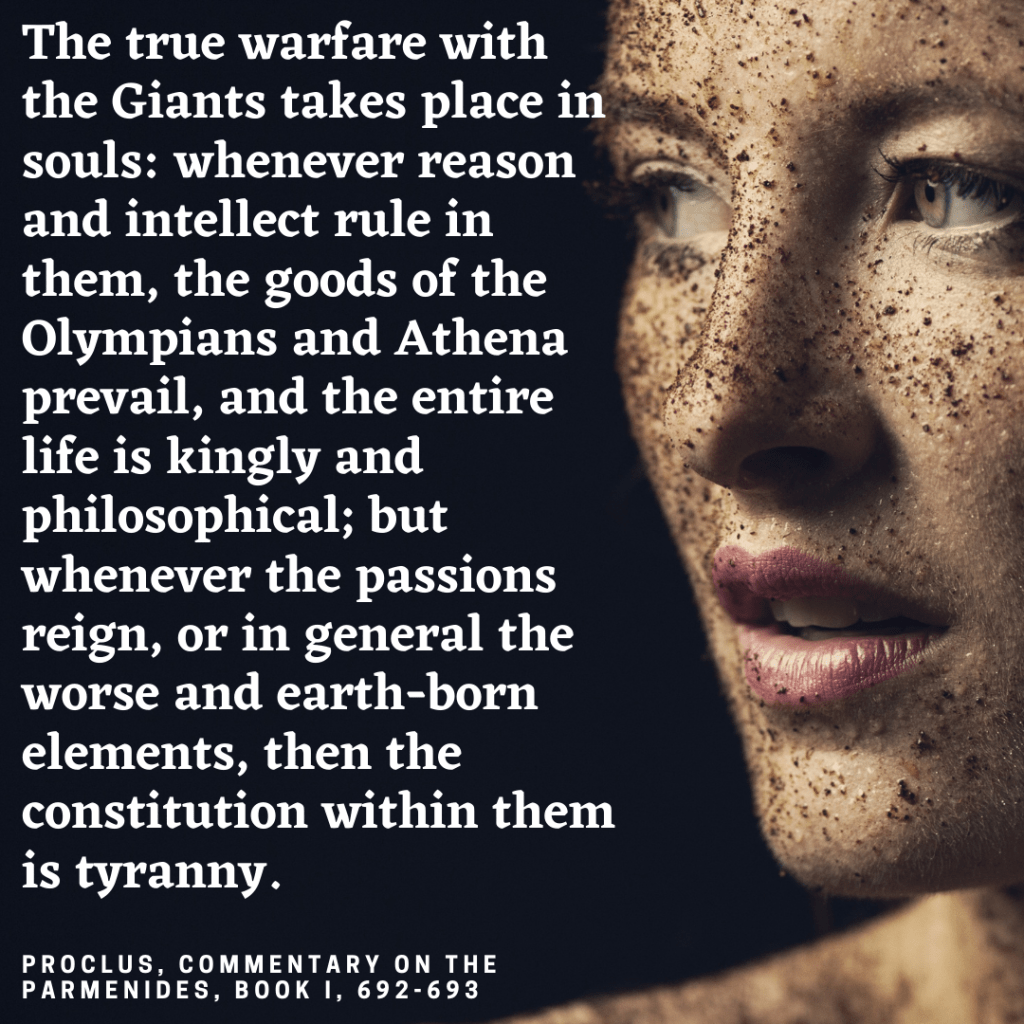This is from Proclus’ Parmenides commentary. While he talks about this kind of warfare a bit more in his Timaeus commentary, it was really interesting to open up the Parmenides commentary recently and find that this was there. I had even underlined it. It makes me want to go back and read a bit more to catch what I must have missed back in 2019 when I was extremely new to reading Platonic commentaries.