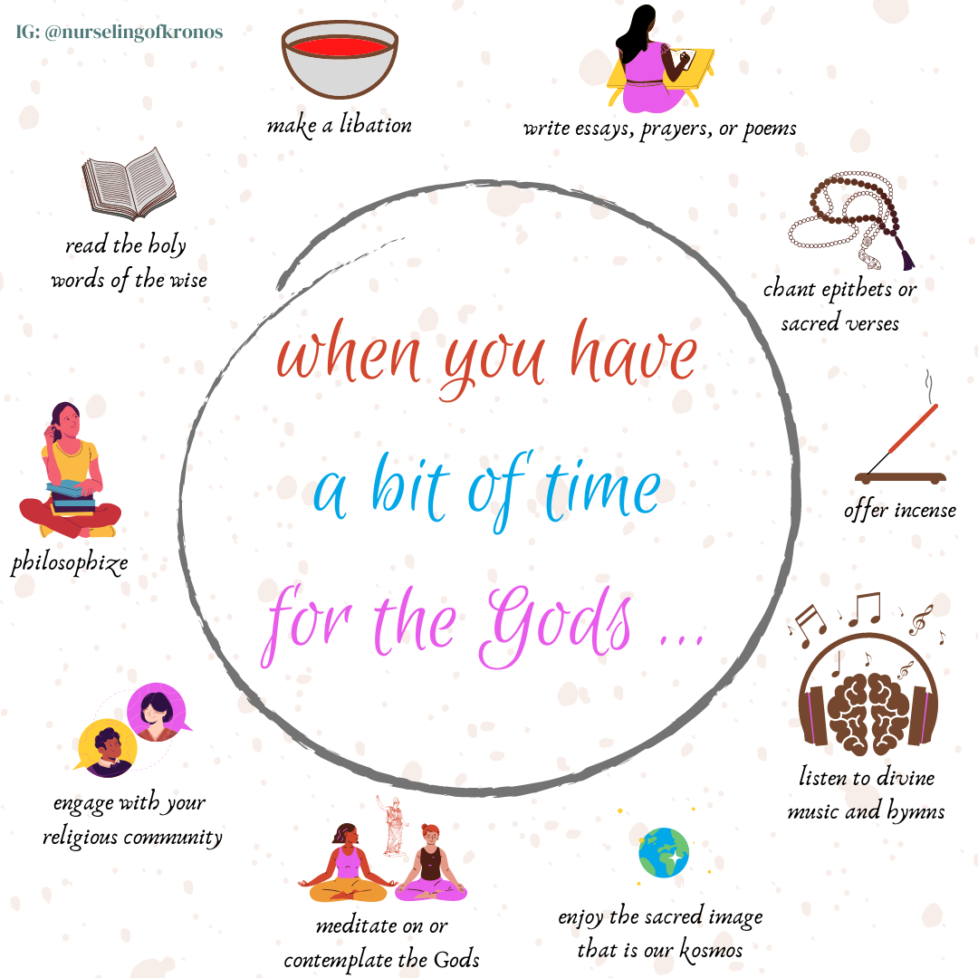 Not included in the image or bulleted list was listening to sacred music. Daemonia Nymphe and others are setting hymns to music, and they create very lovely compositions. I did make a follow-up Instagram infographic, though, that includes it!