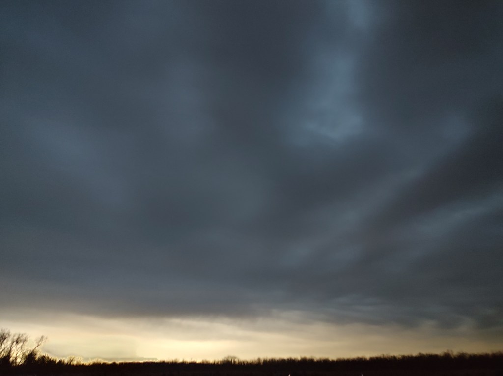 Most people left after totality had finished. We stayed until the eclipse was over, catching glimpses of the sun’s partiality through the clouds. The sun came out from behind the clouds about three or four minutes before the eclipse ended. It was sunny and beautiful for a time. As we drove to my mom’s house, we found rain for a few minutes on a rural stretch of road.
